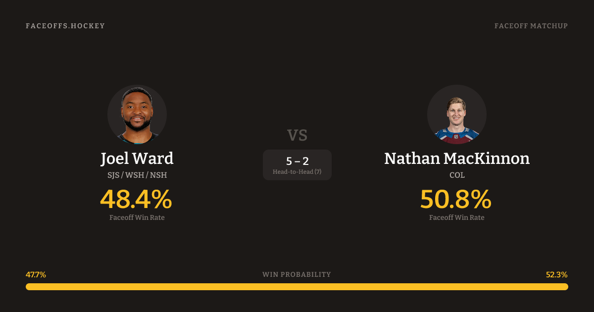 Joel Ward vs Nathan MacKinnon — Faceoff Head-to-Head