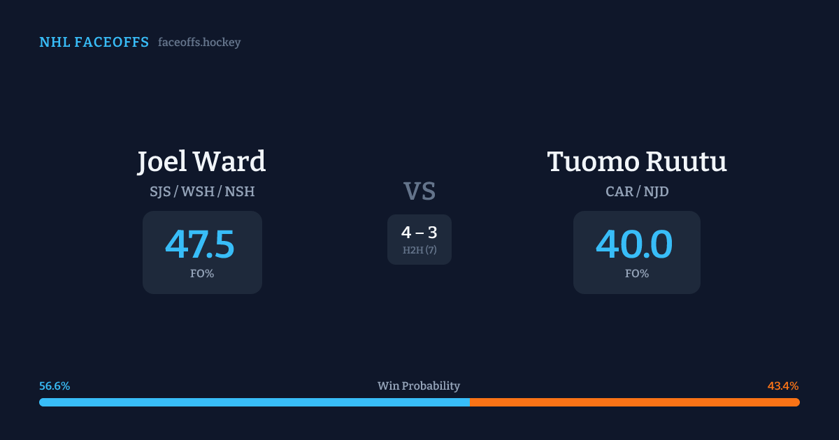 Joel Ward vs Tuomo Ruutu — Faceoff Head-to-Head