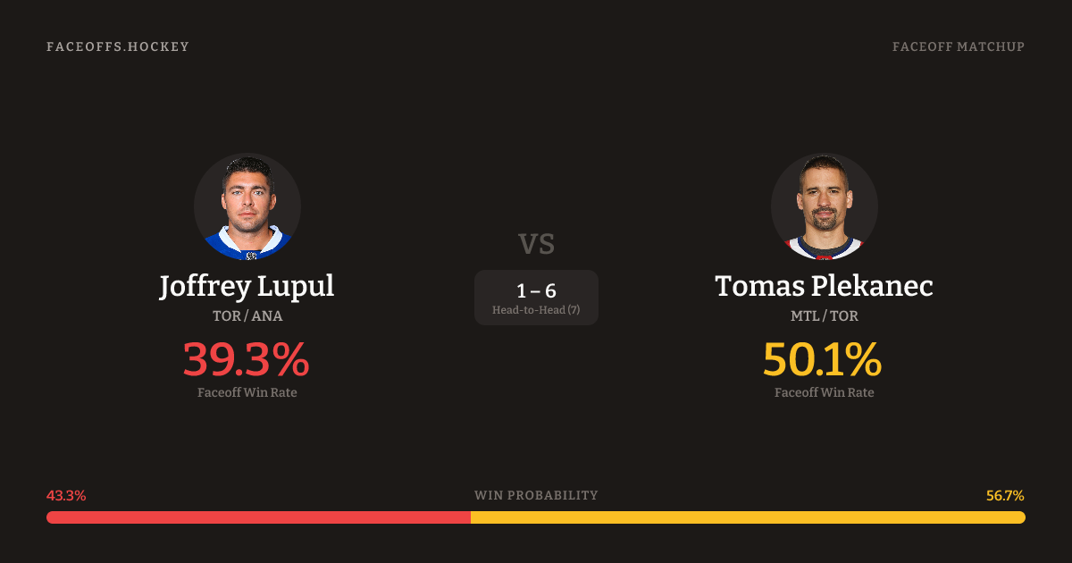 Joffrey Lupul vs Tomas Plekanec — Faceoff Head-to-Head