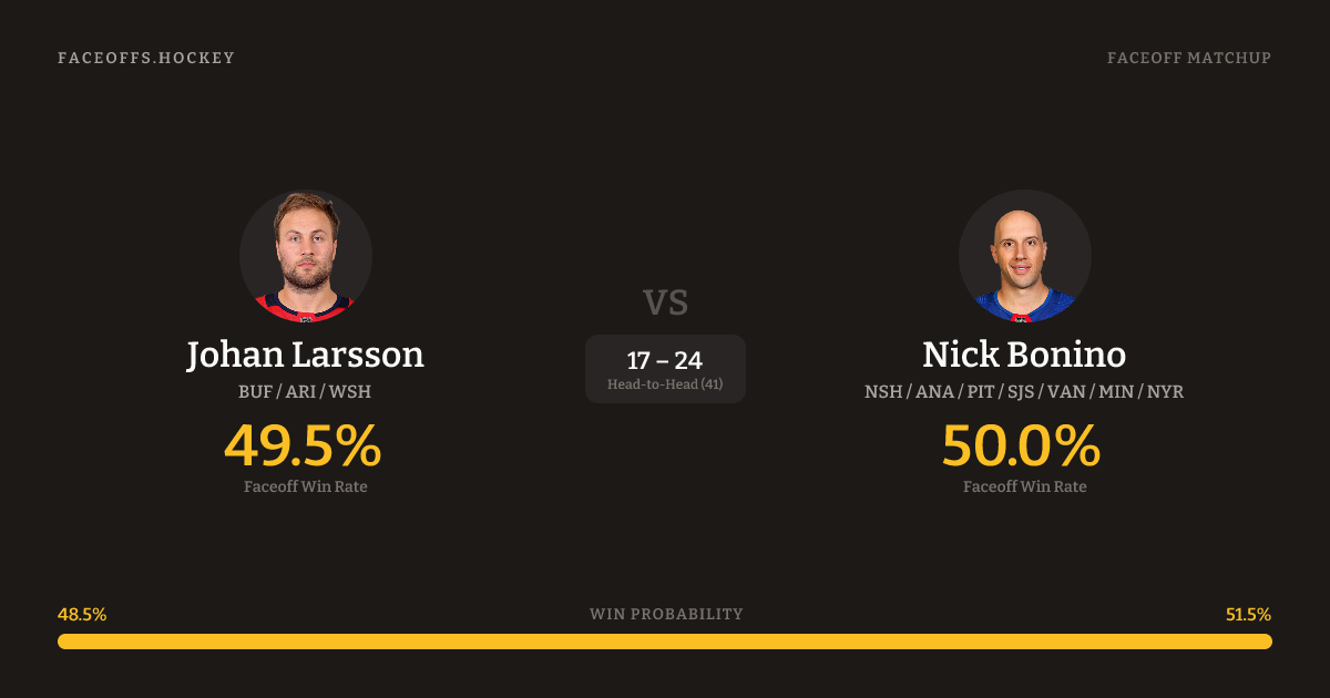 Johan Larsson vs Nick Bonino — Faceoff Head-to-Head