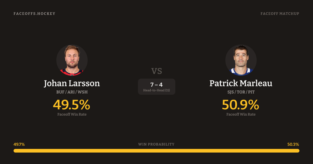 Johan Larsson vs Patrick Marleau — Faceoff Head-to-Head