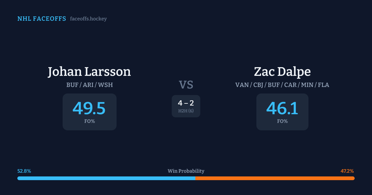 Johan Larsson vs Zac Dalpe — Faceoff Head-to-Head