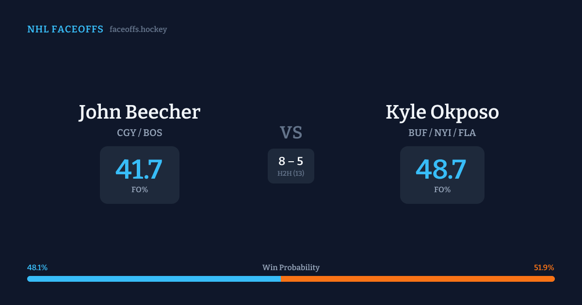 John Beecher vs Kyle Okposo — Faceoff Head-to-Head
