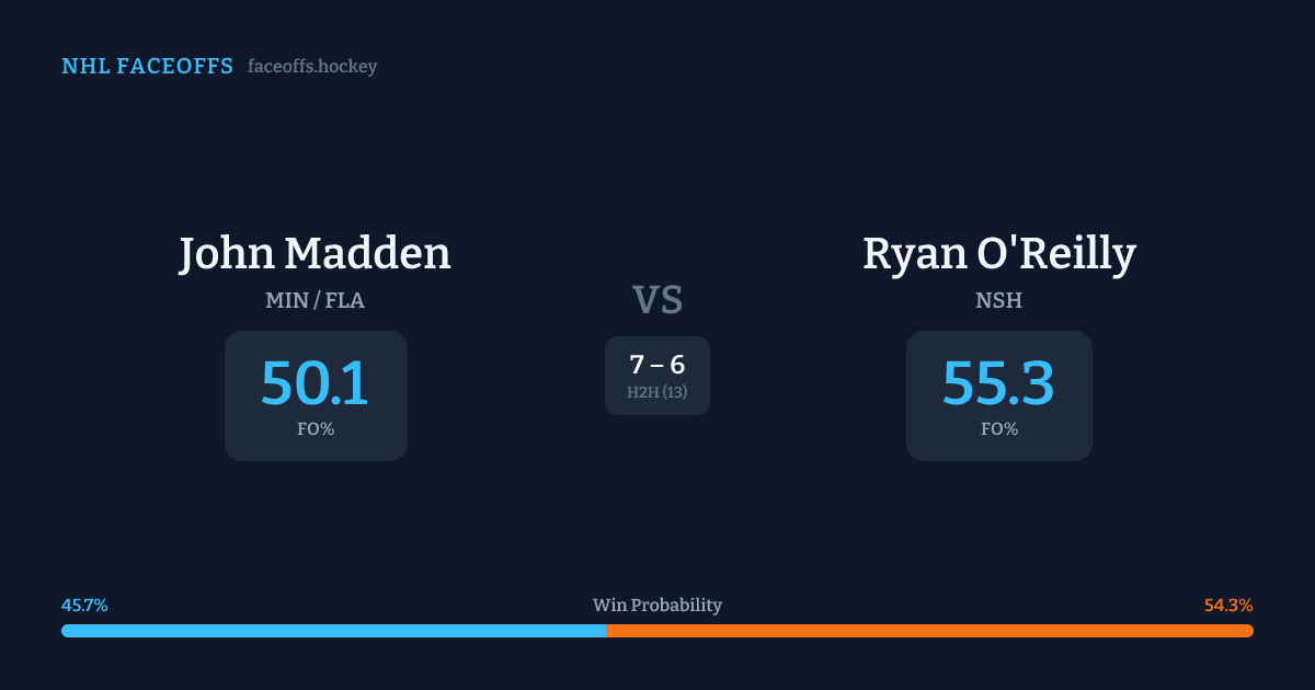 John Madden vs Ryan O'Reilly — Faceoff Head-to-Head