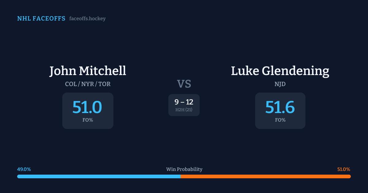 John Mitchell vs Luke Glendening — Faceoff Head-to-Head
