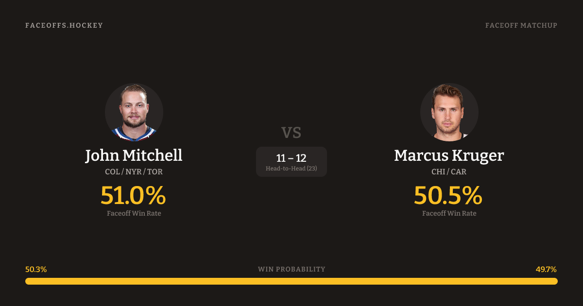 John Mitchell vs Marcus Kruger — Faceoff Head-to-Head