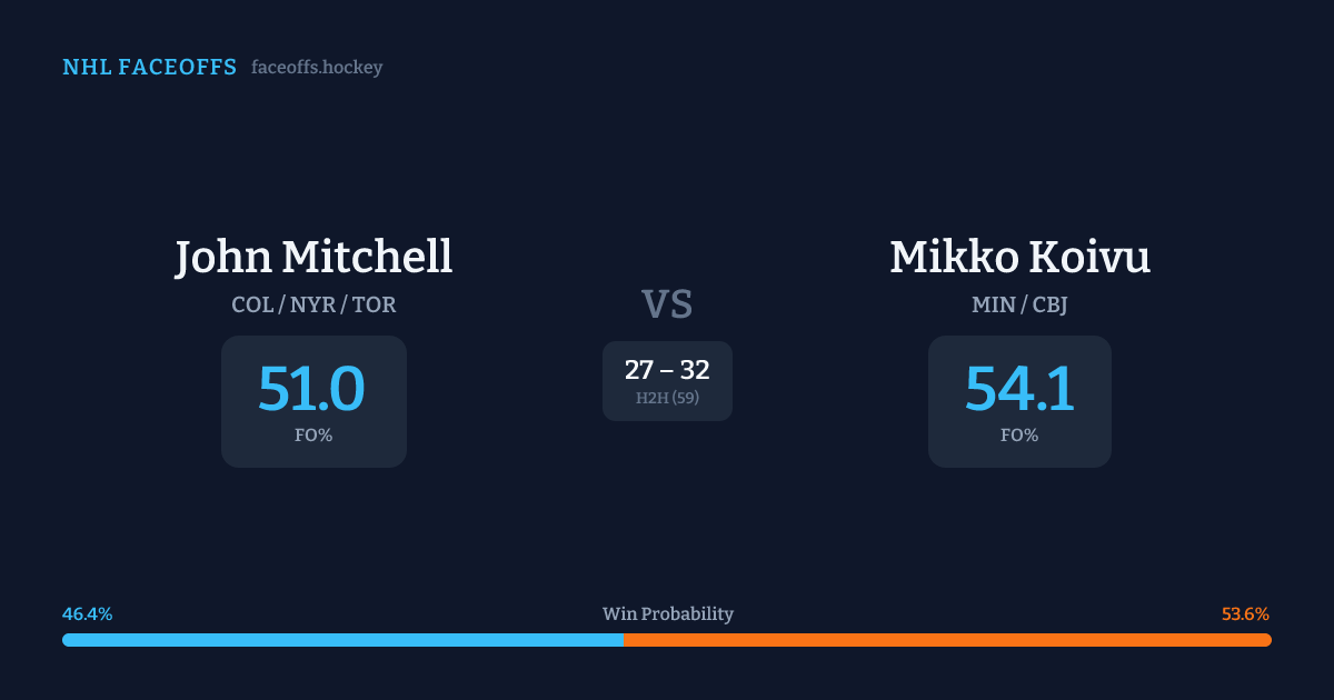 John Mitchell vs Mikko Koivu — Faceoff Head-to-Head