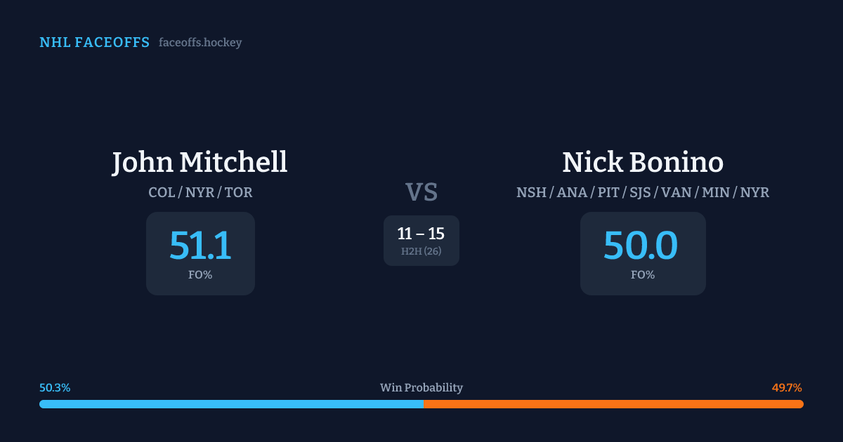 John Mitchell vs Nick Bonino — Faceoff Head-to-Head
