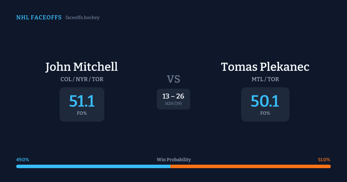 John Mitchell vs Tomas Plekanec — Faceoff Head-to-Head