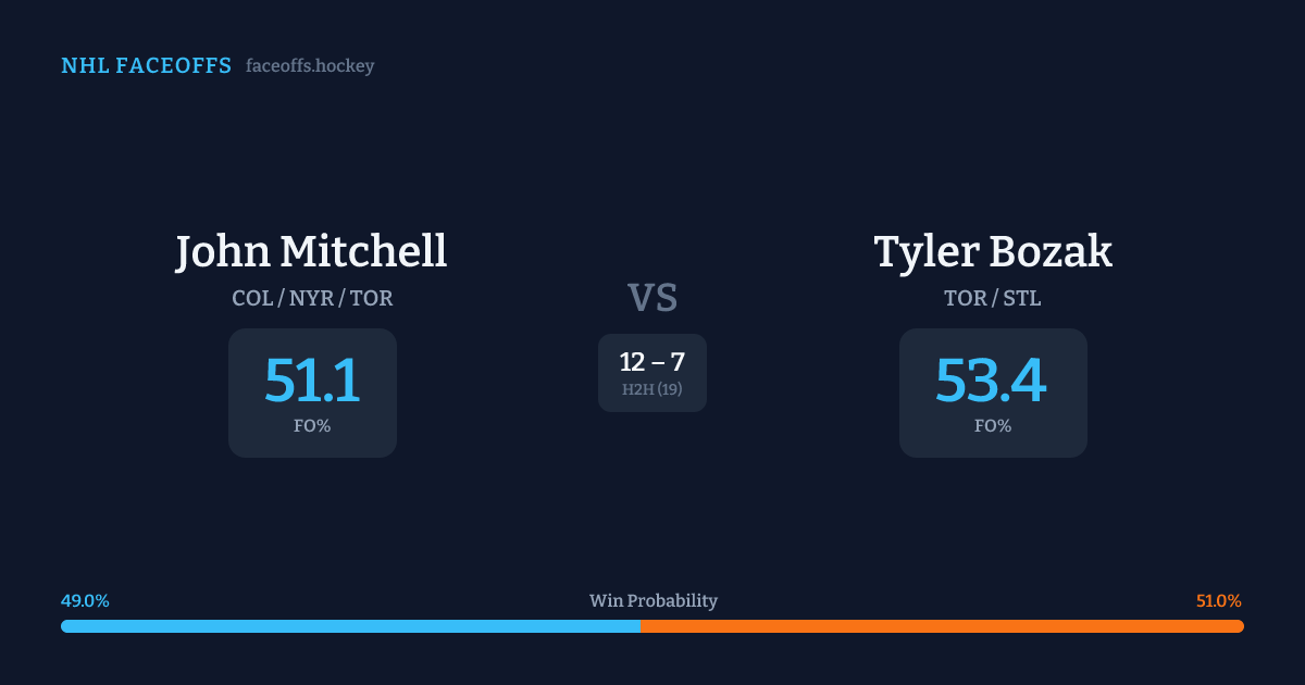 John Mitchell vs Tyler Bozak — Faceoff Head-to-Head