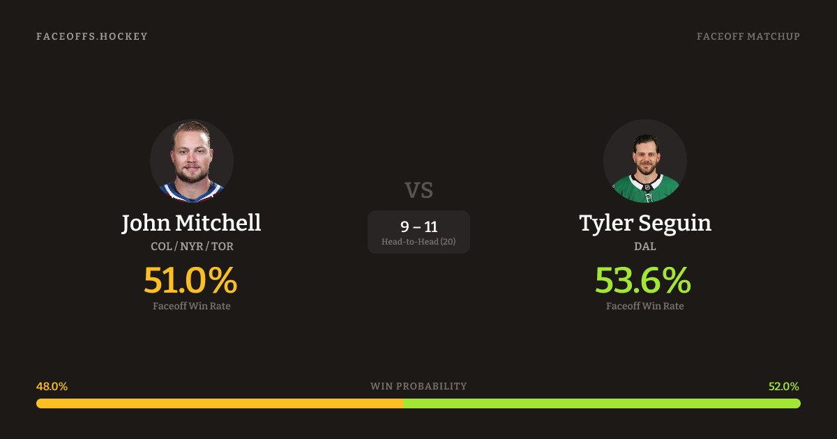 John Mitchell vs Tyler Seguin — Faceoff Head-to-Head
