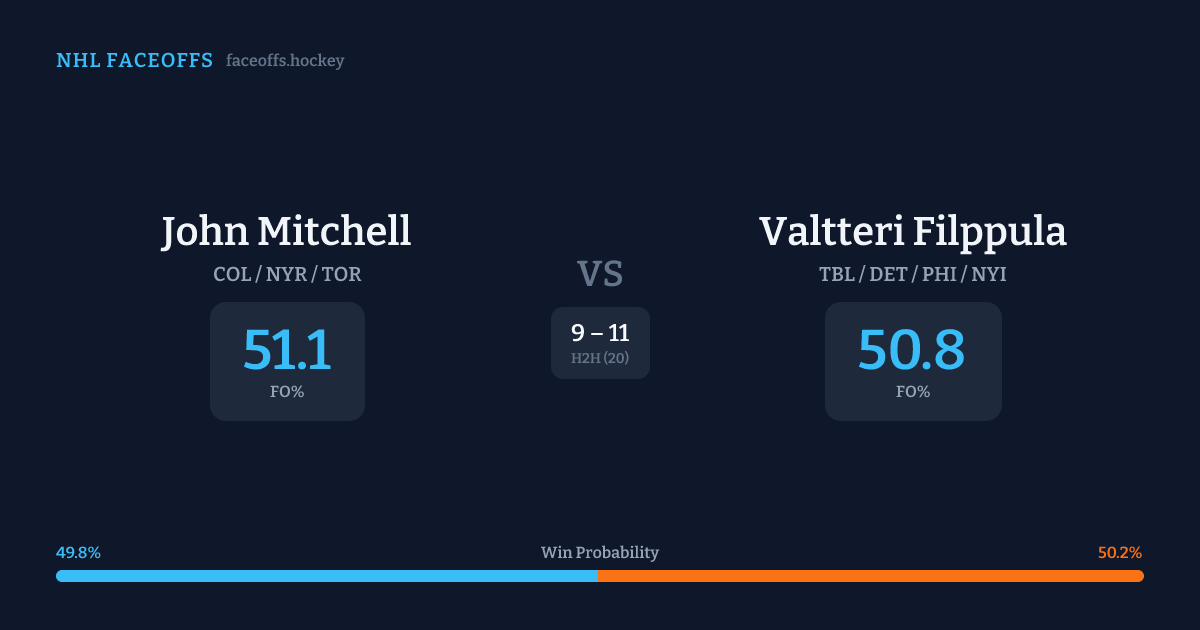 John Mitchell vs Valtteri Filppula — Faceoff Head-to-Head