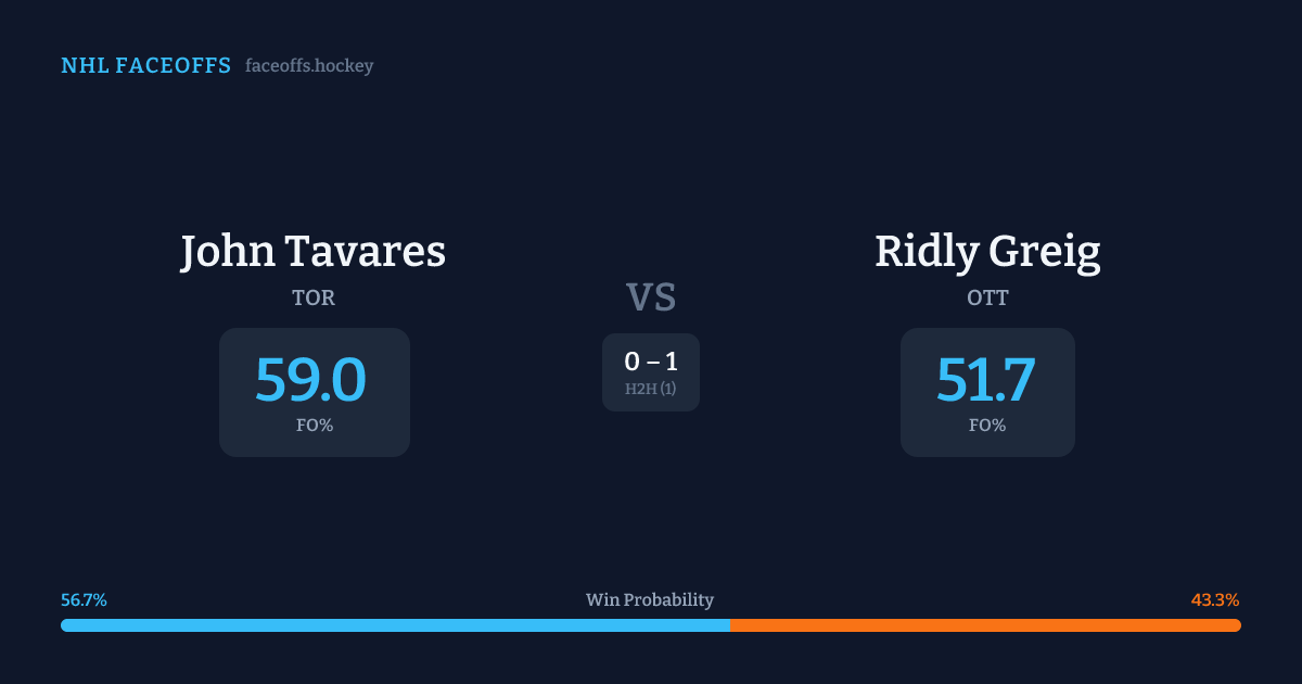 John Tavares vs Ridly Greig — Faceoff Head-to-Head