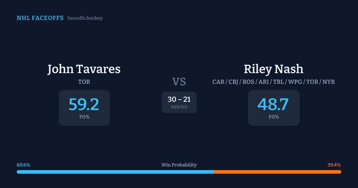 John Tavares vs Riley Nash — Faceoff Head-to-Head