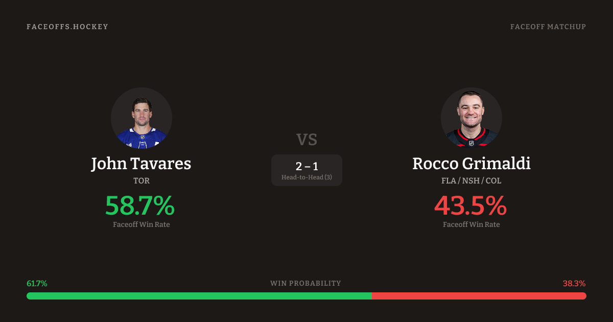 John Tavares vs Rocco Grimaldi — Faceoff Head-to-Head