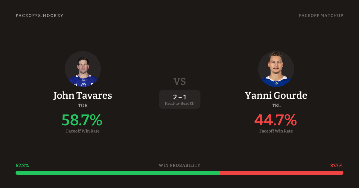 John Tavares vs Yanni Gourde — Faceoff Head-to-Head