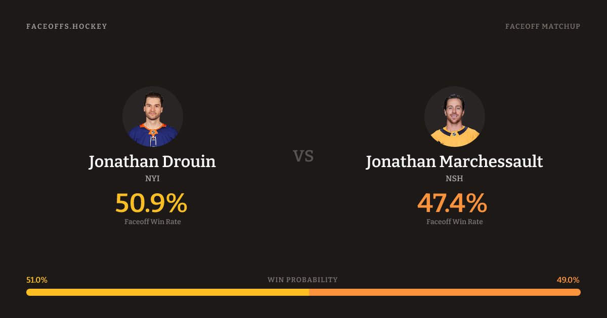 Drouin 50.6% vs Marchessault 49.6% (+3.5%)