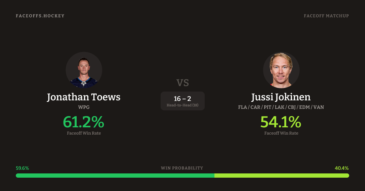 Jonathan Toews vs Jussi Jokinen — Faceoff Head-to-Head