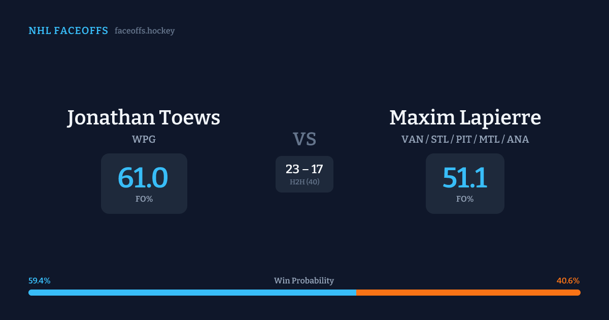 Jonathan Toews vs Maxim Lapierre — Faceoff Head-to-Head