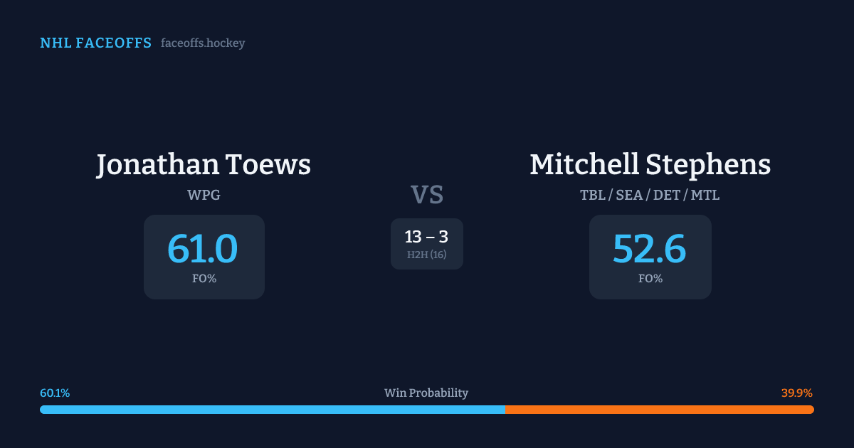 Jonathan Toews vs Mitchell Stephens — Faceoff Head-to-Head