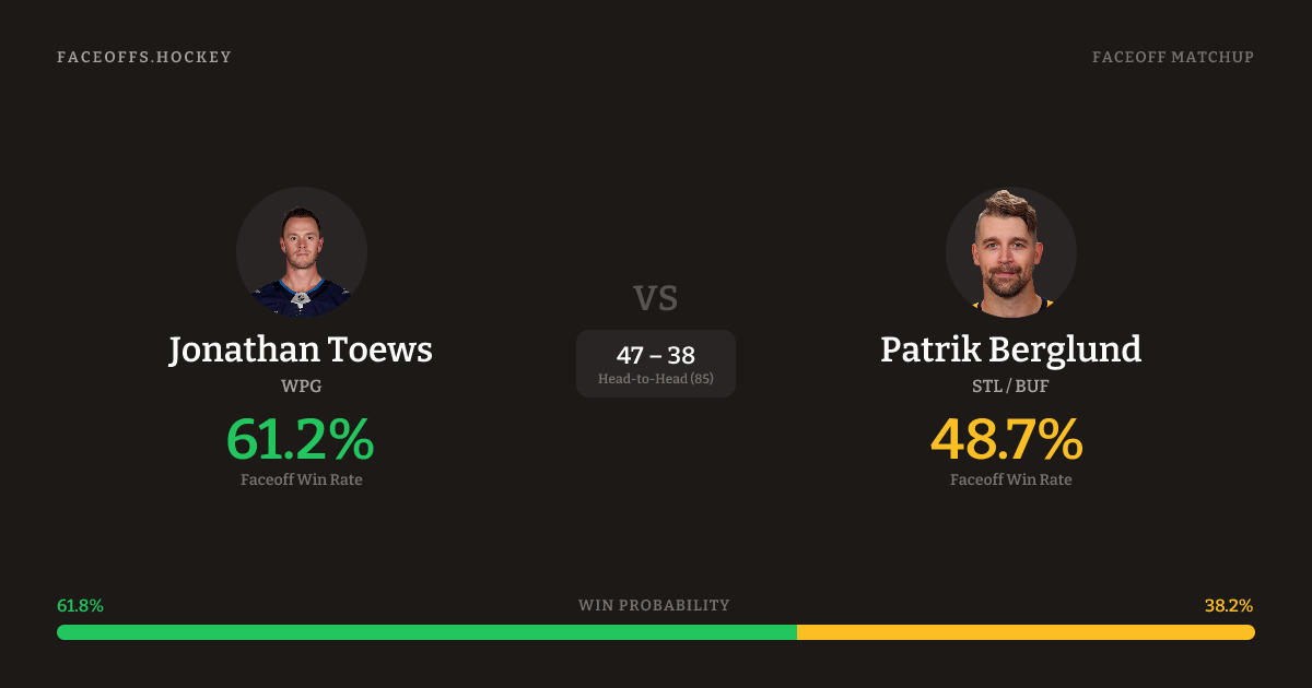 Jonathan Toews vs Patrik Berglund — Faceoff Head-to-Head