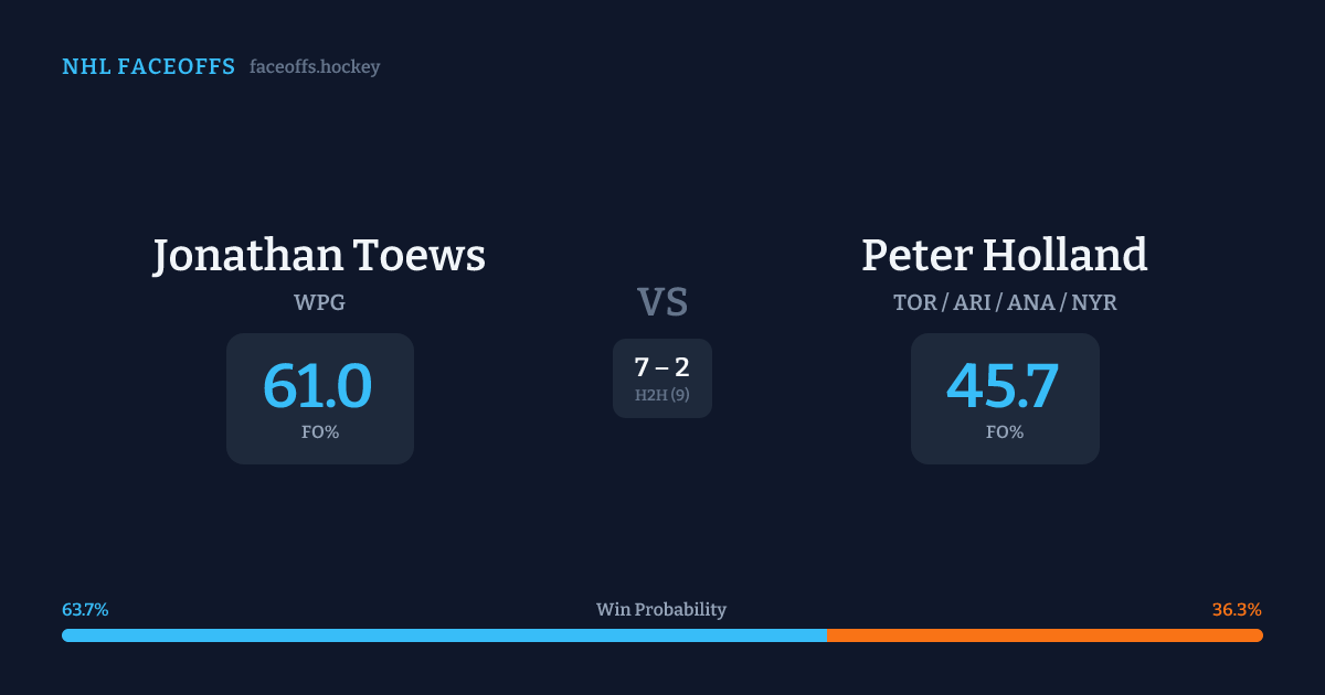Jonathan Toews vs Peter Holland — Faceoff Head-to-Head