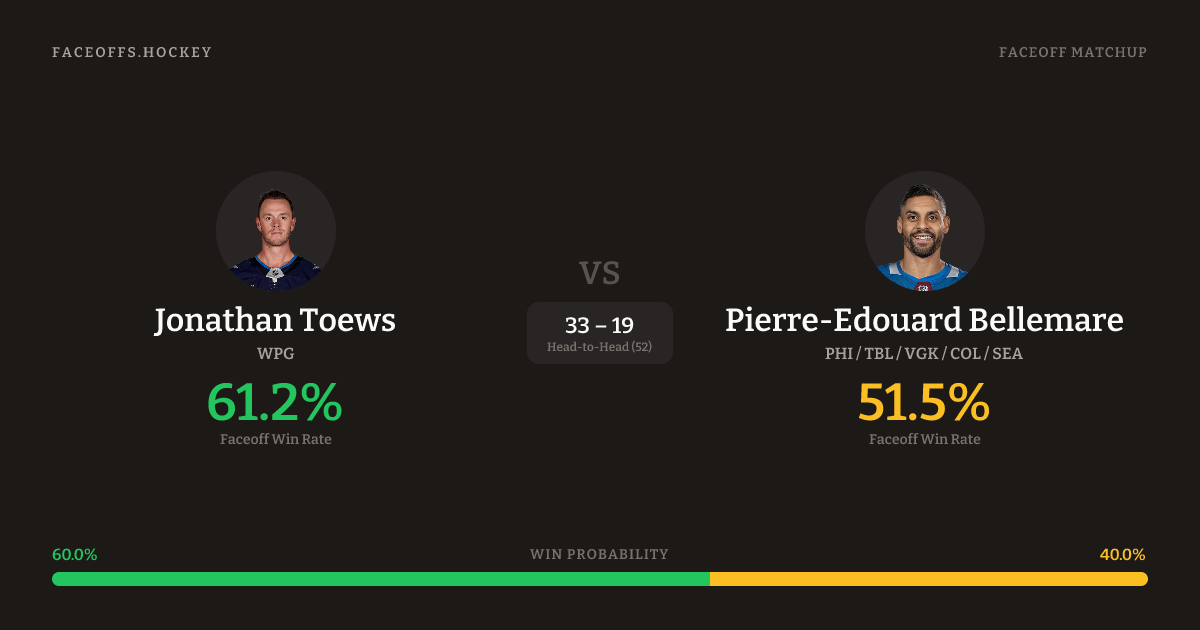 Jonathan Toews vs Pierre-Edouard Bellemare — Faceoff Head-to-Head