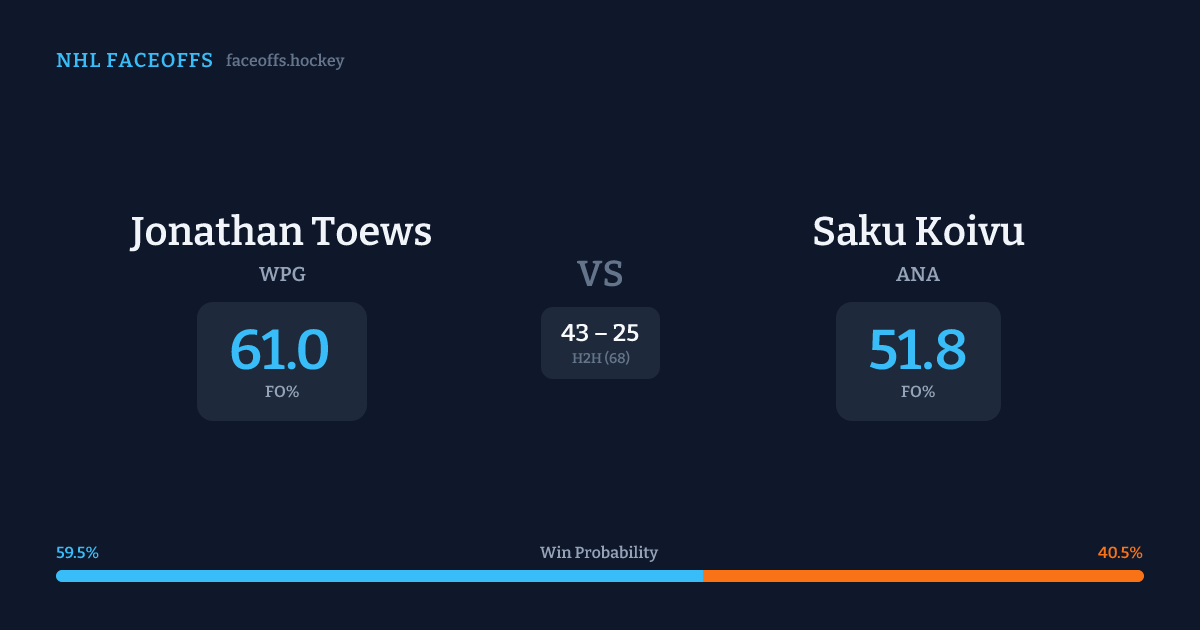 Jonathan Toews vs Saku Koivu — Faceoff Head-to-Head
