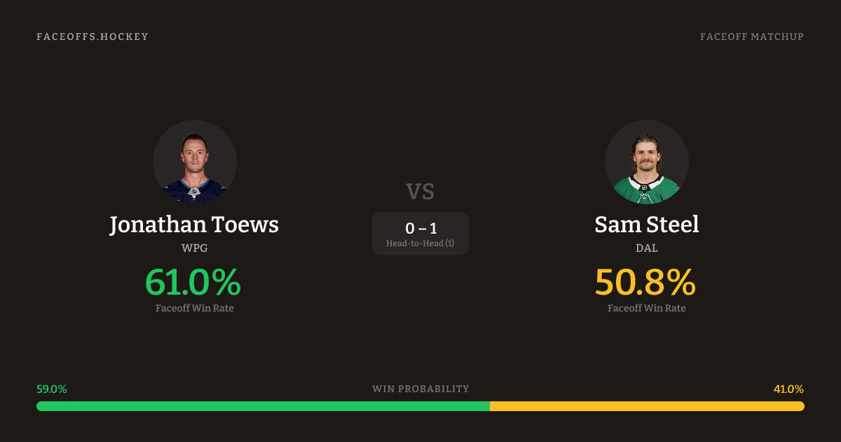 Jonathan Toews vs Sam Steel — Faceoff Head-to-Head