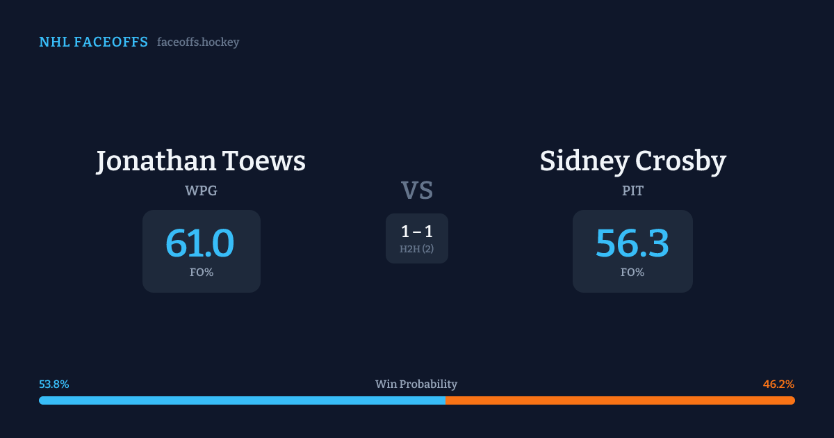 Jonathan Toews vs Sidney Crosby — Faceoff Head-to-Head