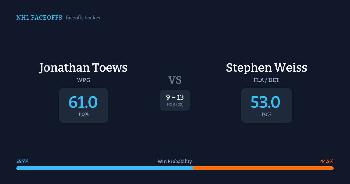Jonathan Toews vs Stephen Weiss — Faceoff Head-to-Head
