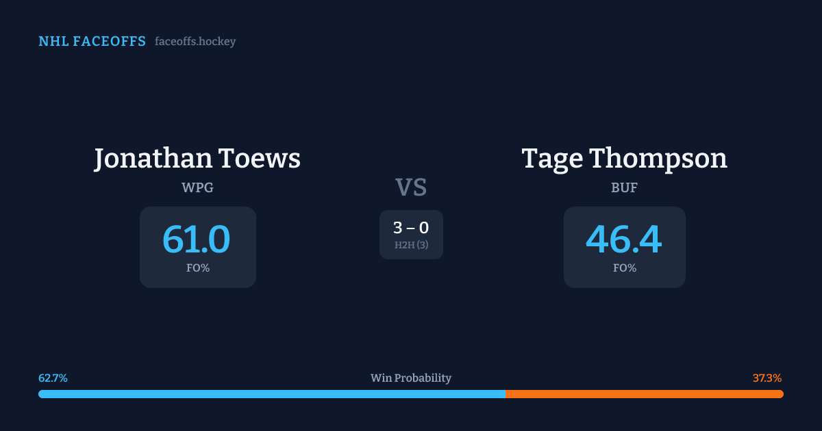 Jonathan Toews vs Tage Thompson — Faceoff Head-to-Head