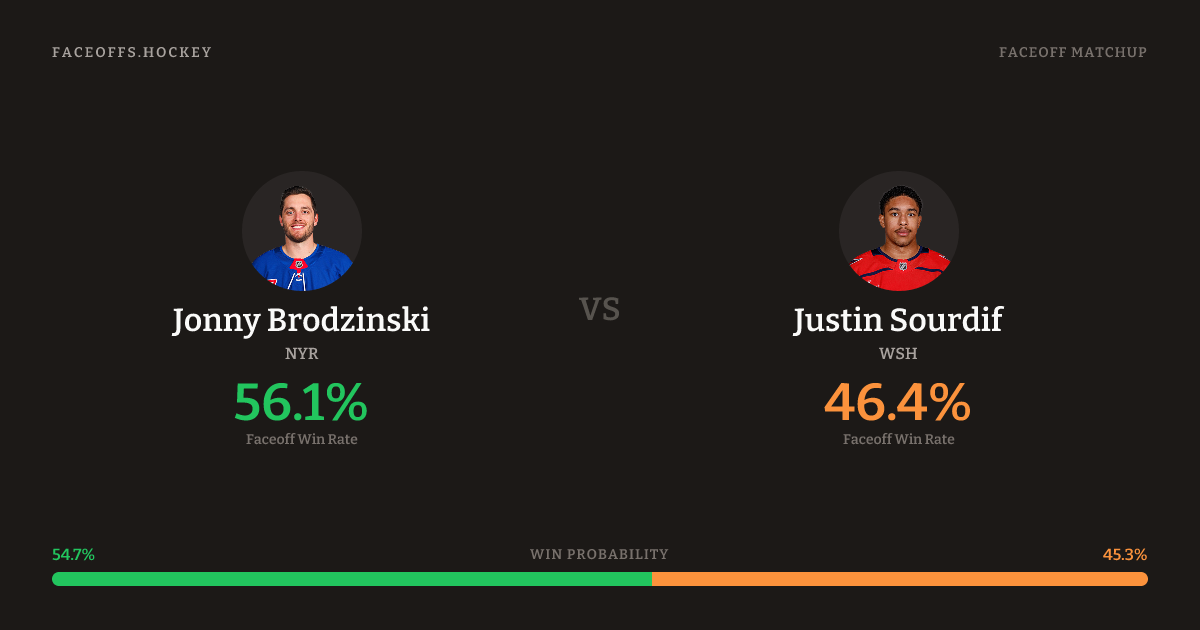 Jonny Brodzinski vs Justin Sourdif — Faceoff Head-to-Head