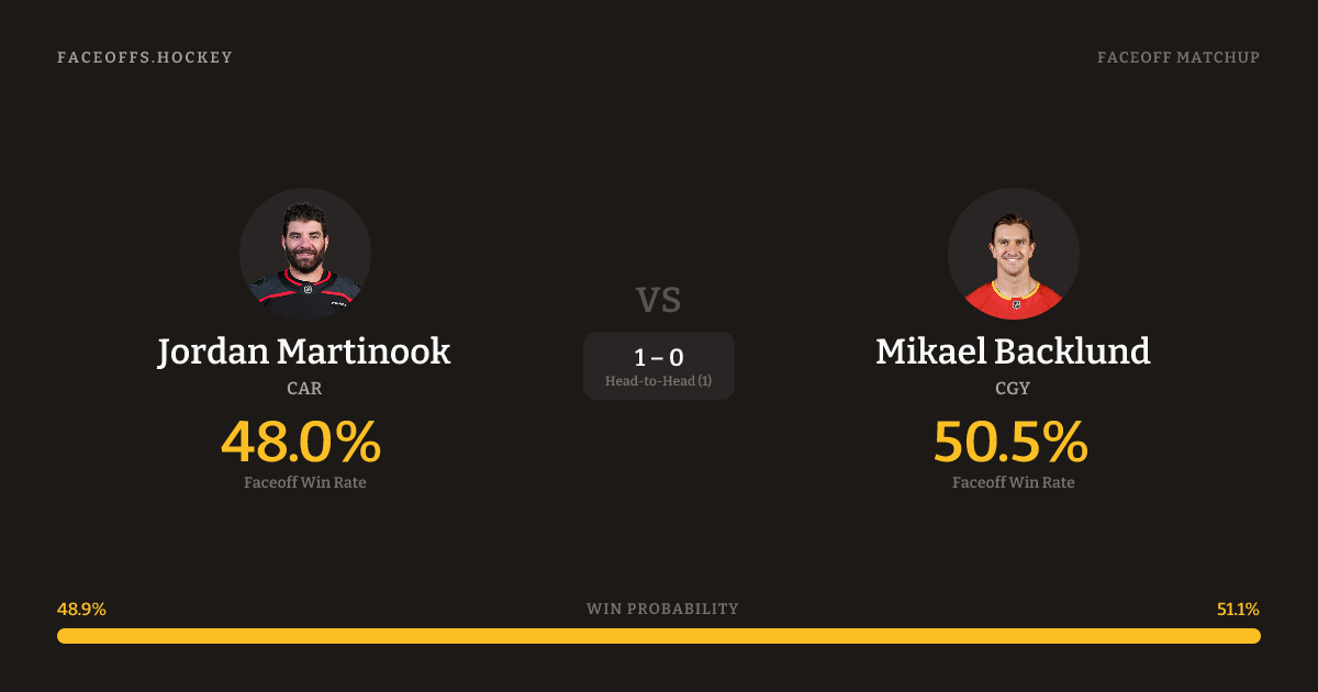 Jordan Martinook vs Mikael Backlund — Faceoff Head-to-Head