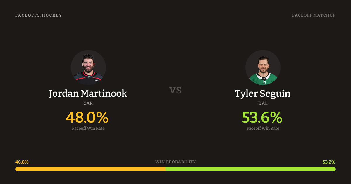 Jordan Martinook vs Tyler Seguin — Faceoff Head-to-Head