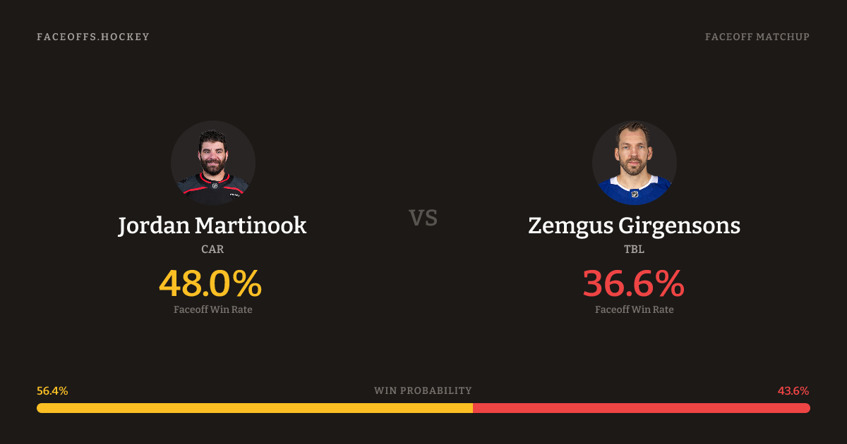 Jordan Martinook vs Zemgus Girgensons — Faceoff Head-to-Head