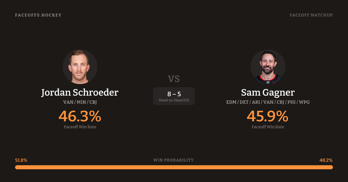 Jordan Schroeder vs Sam Gagner — Faceoff Head-to-Head