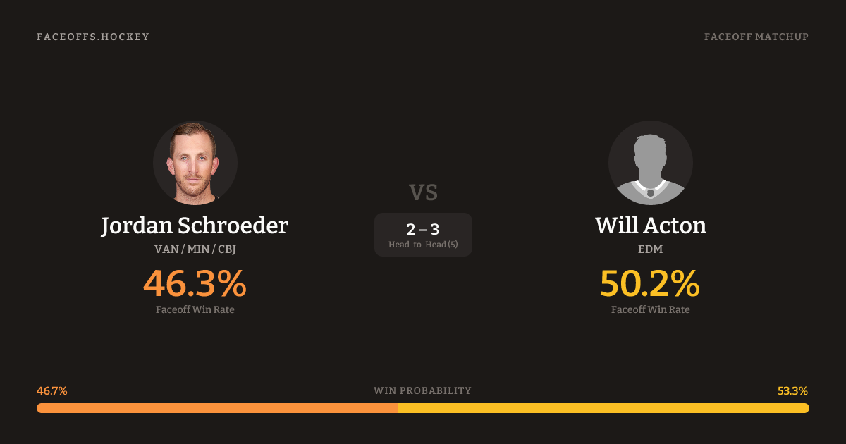 Jordan Schroeder vs Will Acton — Faceoff Head-to-Head