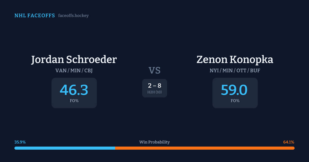 Jordan Schroeder vs Zenon Konopka — Faceoff Head-to-Head