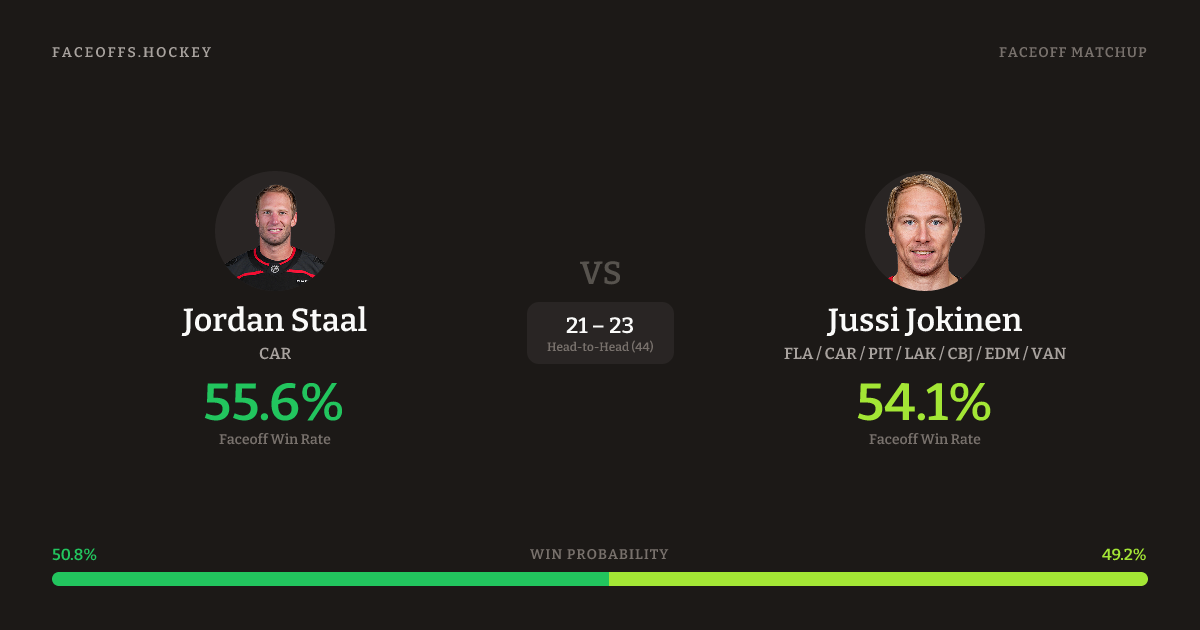 Jordan Staal vs Jussi Jokinen — Faceoff Head-to-Head