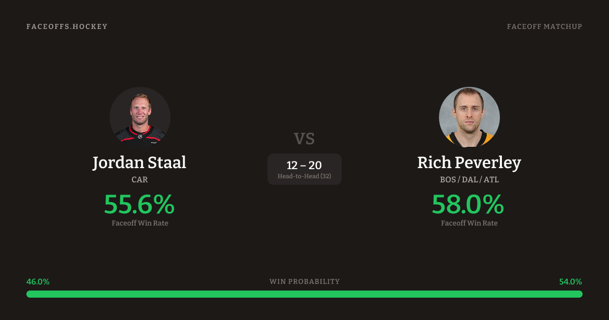 Jordan Staal vs Rich Peverley — Faceoff Head-to-Head
