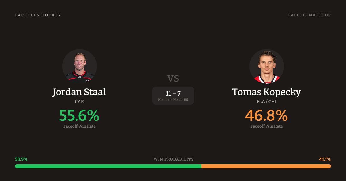 Jordan Staal vs Tomas Kopecky — Faceoff Head-to-Head