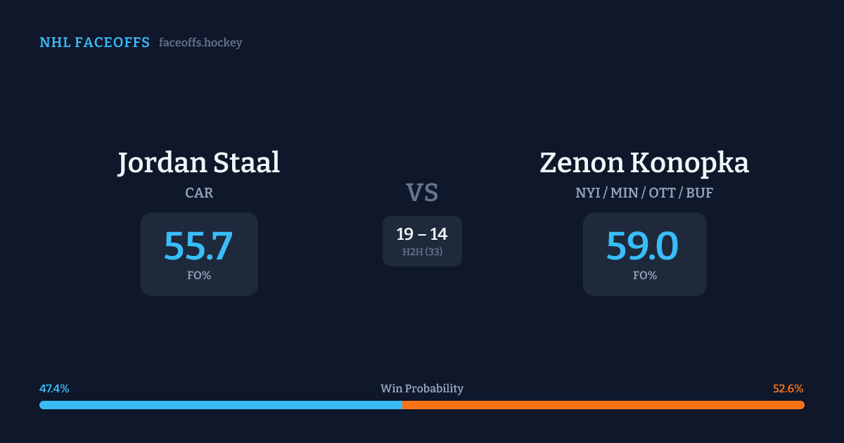 Jordan Staal vs Zenon Konopka — Faceoff Head-to-Head