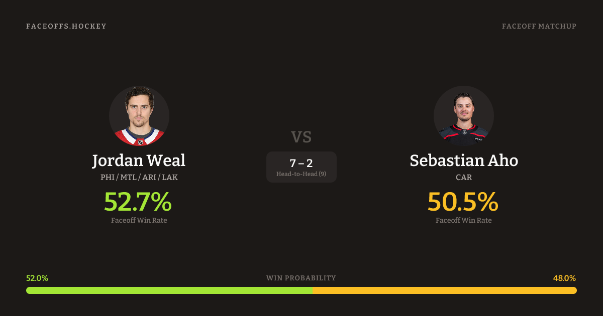 Jordan Weal vs Sebastian Aho — Faceoff Head-to-Head