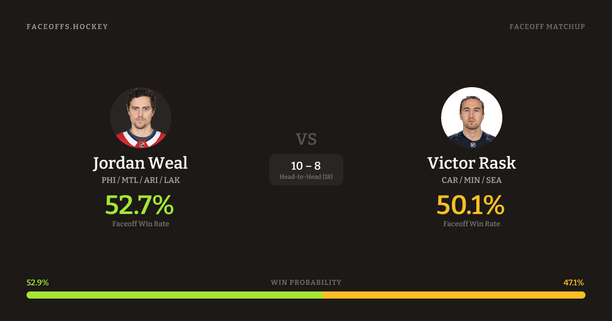 Jordan Weal vs Victor Rask — Faceoff Head-to-Head
