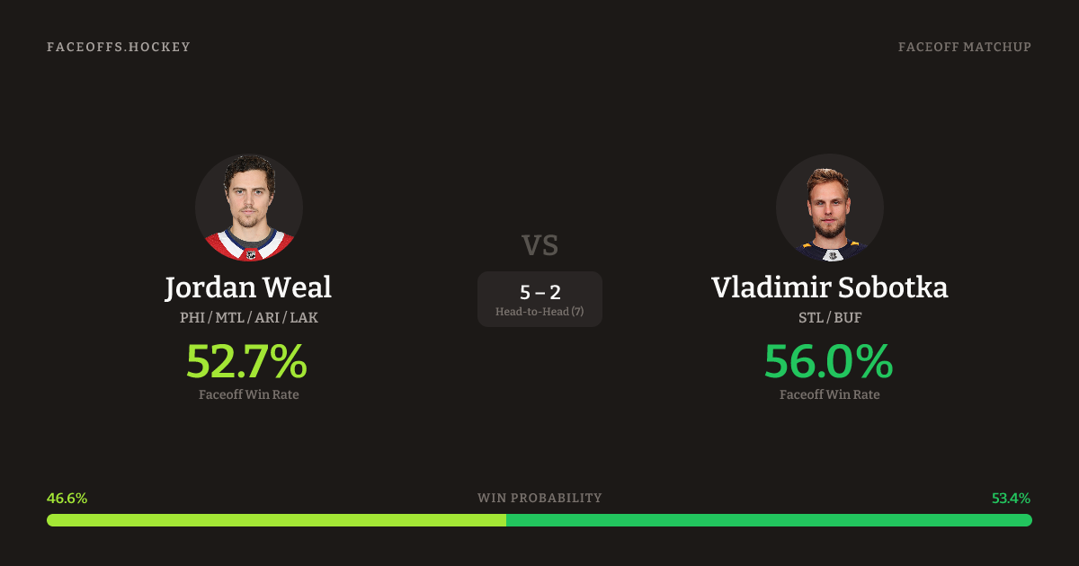 Jordan Weal vs Vladimir Sobotka — Faceoff Head-to-Head