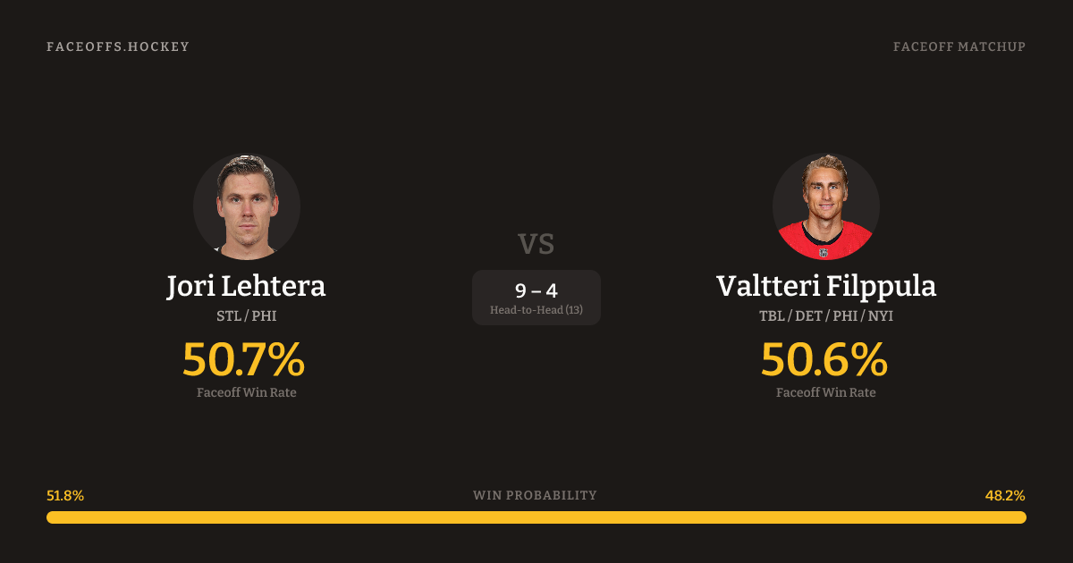 Jori Lehtera vs Valtteri Filppula — Faceoff Head-to-Head