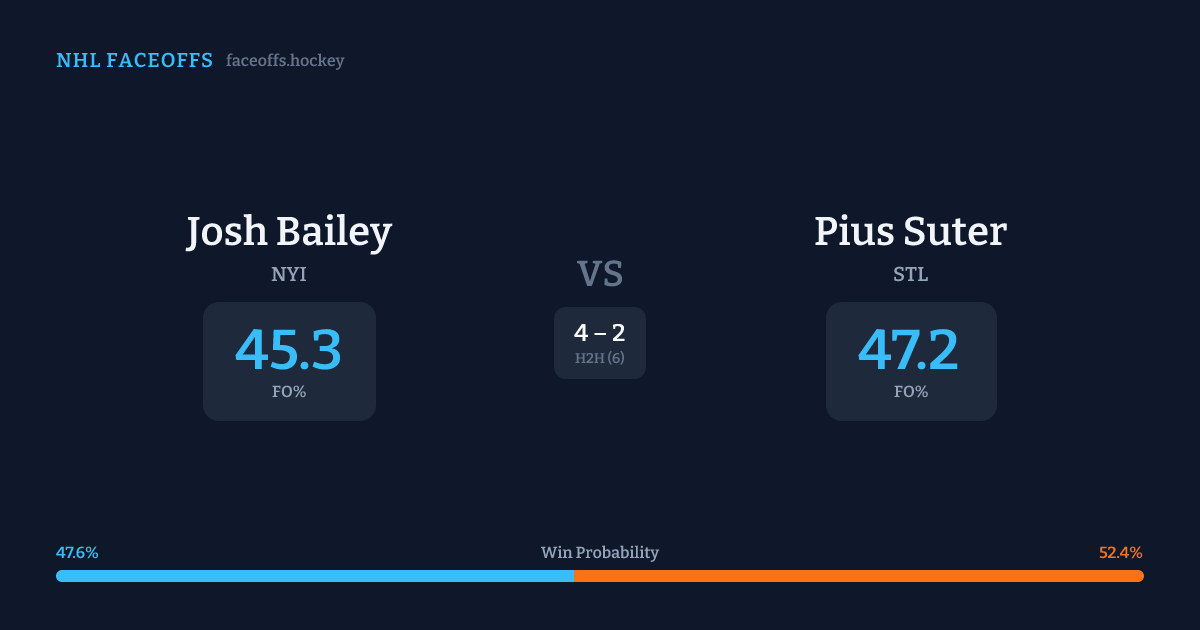 Josh Bailey vs Pius Suter — Faceoff Head-to-Head