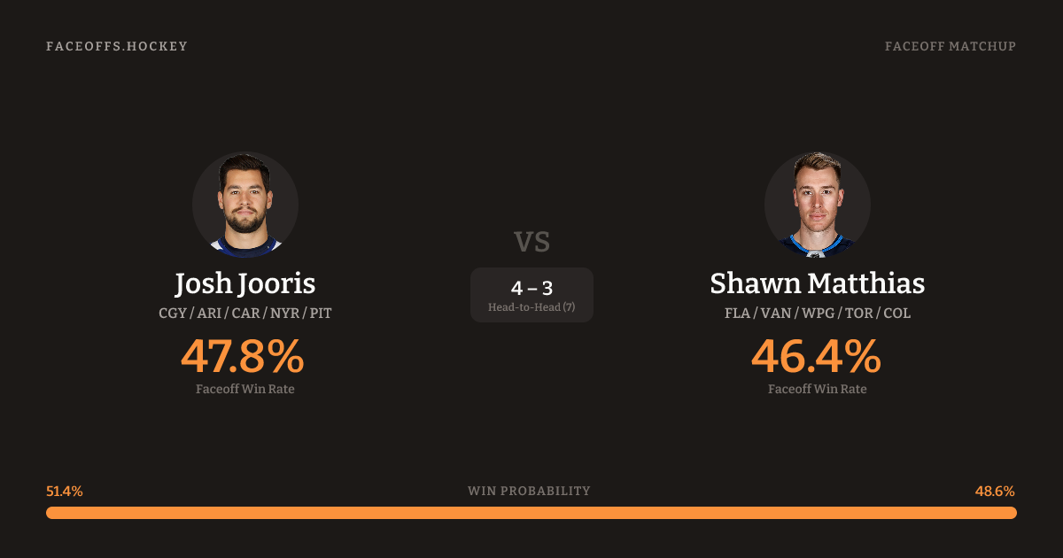 Josh Jooris vs Shawn Matthias — Faceoff Head-to-Head