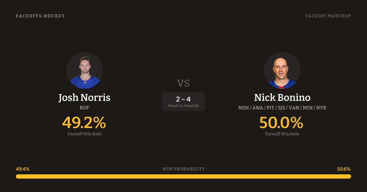Josh Norris vs Nick Bonino — Faceoff Head-to-Head